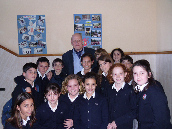 El conferenciante, con un grupo de alumnos