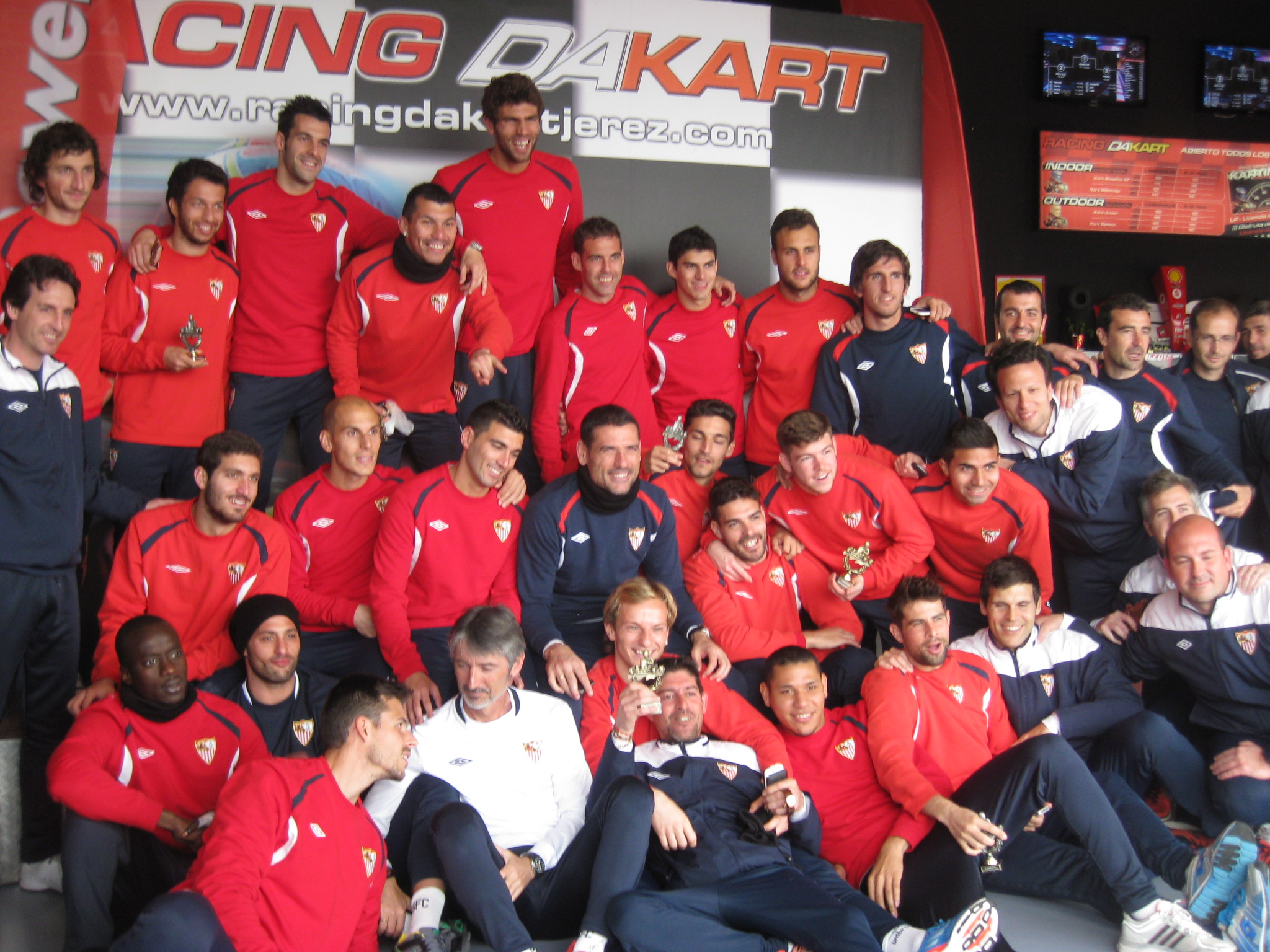 Karting Racing Dakart Jerez acogió el jueves 21 de febrero un campeonato con ‘famosos pilotos’ del mundo del deporte. El Sevilla FC eligió la actividad de karts como método de distensión y convivencia entre jugadores y cuerpo técnico en el cual la adrenalina brotó a raudales según la competición se iba haciendo más y más reñida. Finalmente fue Rakitic el jugador que logró la victoria, flanqueado por Reyes y Fazio. Jugadores y técnicos coincidieron en el buen rato que pasaron siendo el colofón la entrega de trofeos a los vencedores.