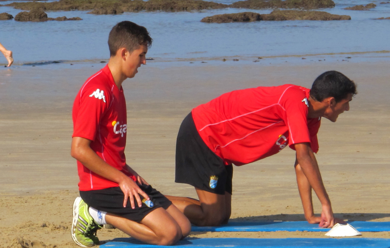 Finalmente son 22 jugadores los que han trabajado, sobre todo el apartado físico con Pepe Losada, que ha imprimido mucha intensidad a los ejercicios. Los elegidos, muchos de ellos a prueba, han realizado primero un circuito con muchas caras de cansancio. Solo Hugo ha sido fichado esta temporada y precisamente uno de los que más intensidad mete en los ejercicios. Posteriormente han jugado al rugby sobre la arena de la playa de Cortadura y el primer entrenamiento ha finalizado sobre las 11.20 horas con varios ejercicios en el agua.
