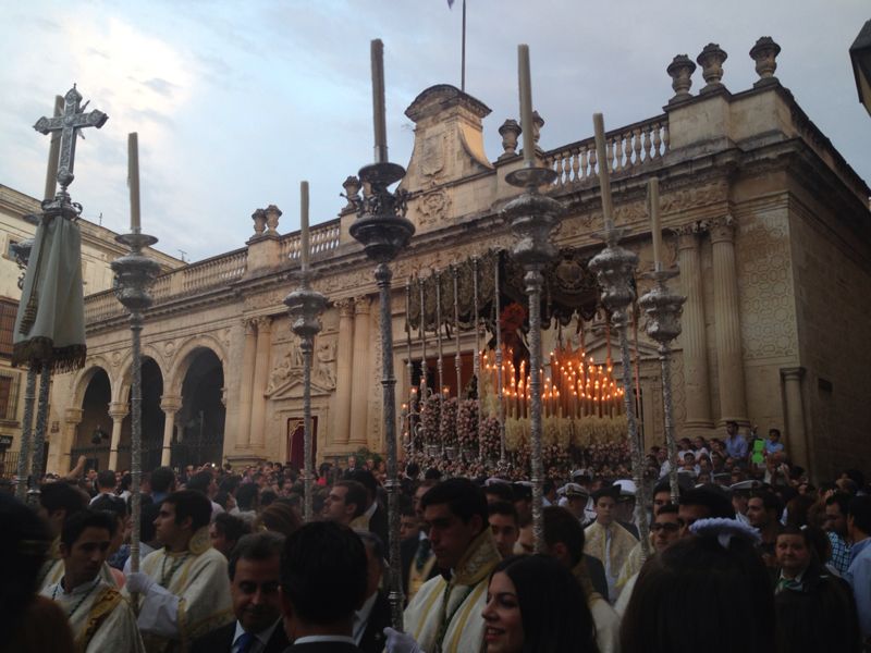 La misa solemne de pontifical que presidió el obispo diocesano, monseñor José Mazuelos, se celebró en la mañana del sábado ante más de mil personas. Fue concelebrada con el obispo de Gerona, Francesc Pardo i Artigas, y varios sacerdotes más. Contó con la participación del coro y orquesta de la Catedral dirigidos por Ángel Hortas, que interpretaron piezas de Mozart, Händel, Deiss y Bach. Al programa musical se les unió la intervención del tenor jerezano, Ismael Jordi, que cantó de forma soberbia el Ave María de Shubert. La primera lectura la hizo el hermano mayor, Ildefonso Roldán, la segunda el presidente de la Unión de Hermandades, Pedro Pérez, y la oración de los fieles, el consiliario de Juventud de la junta de gobierno, José Manuel Oca.