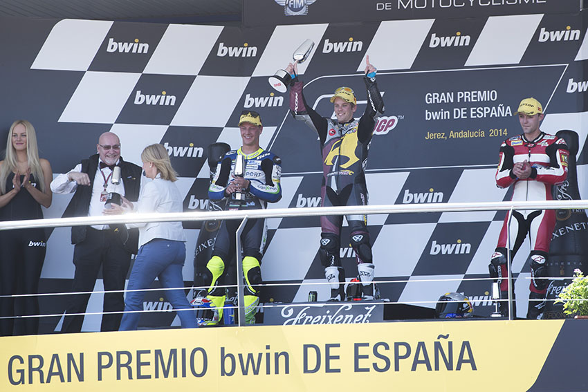 Jerez de la Frontera, Spain, 04 may , 2014: podium of category Moto2 during GRAN PREMIO bwin DE ESPAÑA, in the Jerez circuit.