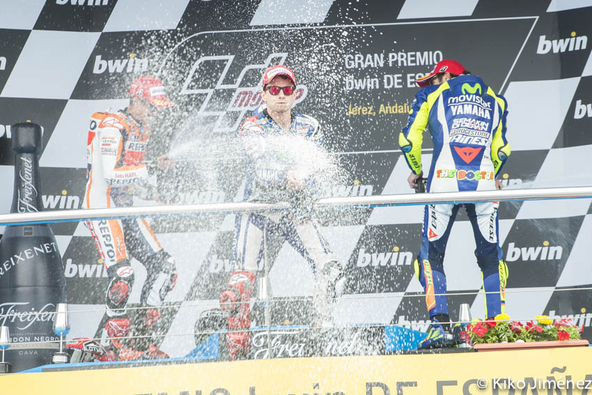 Noticia de 04 mayo, 2015 - 9:56. Tags: fotos gran premio de jerez 2015, Lorenzo, lorenzo en podio jerez 2015, Márquez, Rossi