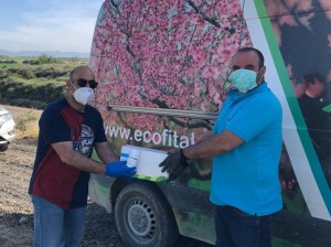 Distribución de gel y mascarillas para los agricultores