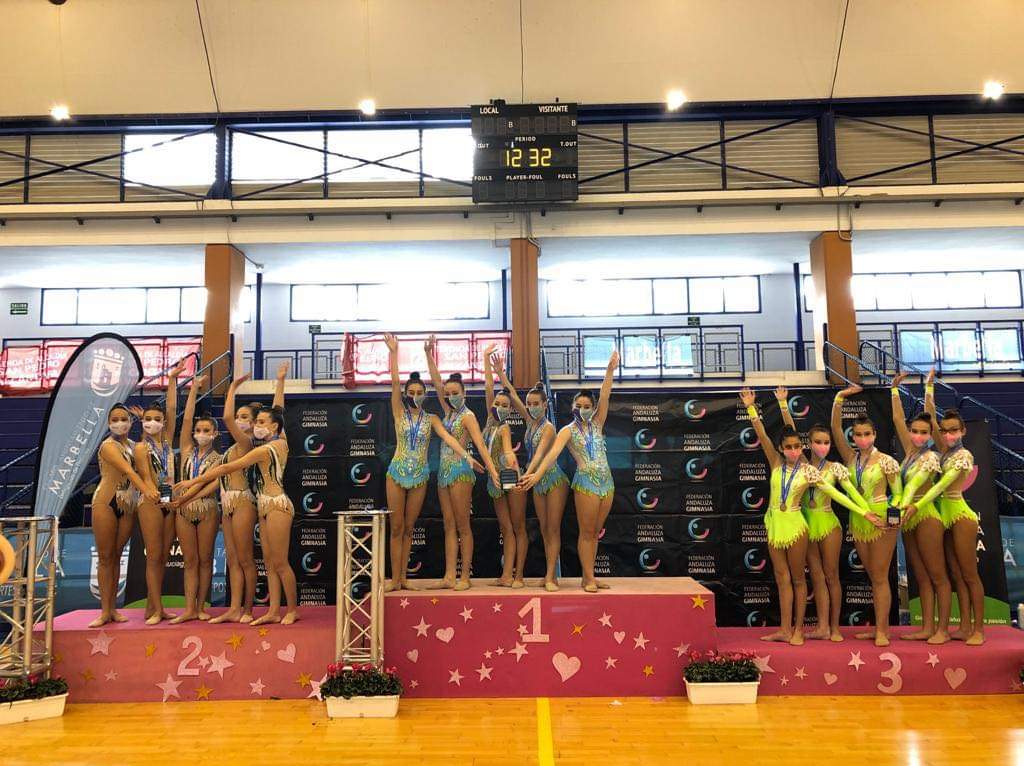 Los resultados han sido excelentes como colofón a esta atípica temporada. Tras una corta jornada llena de protocolos, nervios, mascarillas, hidrogeles, etc, las gimnastas jerezanas han conseguido estos estupendos resultados. ORO para el conjunto cadetes y décima plaza con diploma andaluz para las infantiles. Felicidades también a nuestro conjunto alevín que, aunque no pudieron competir por una lesión dos días antes, han trabajado muchísimo y estamos muy orgullosas de ellas.
