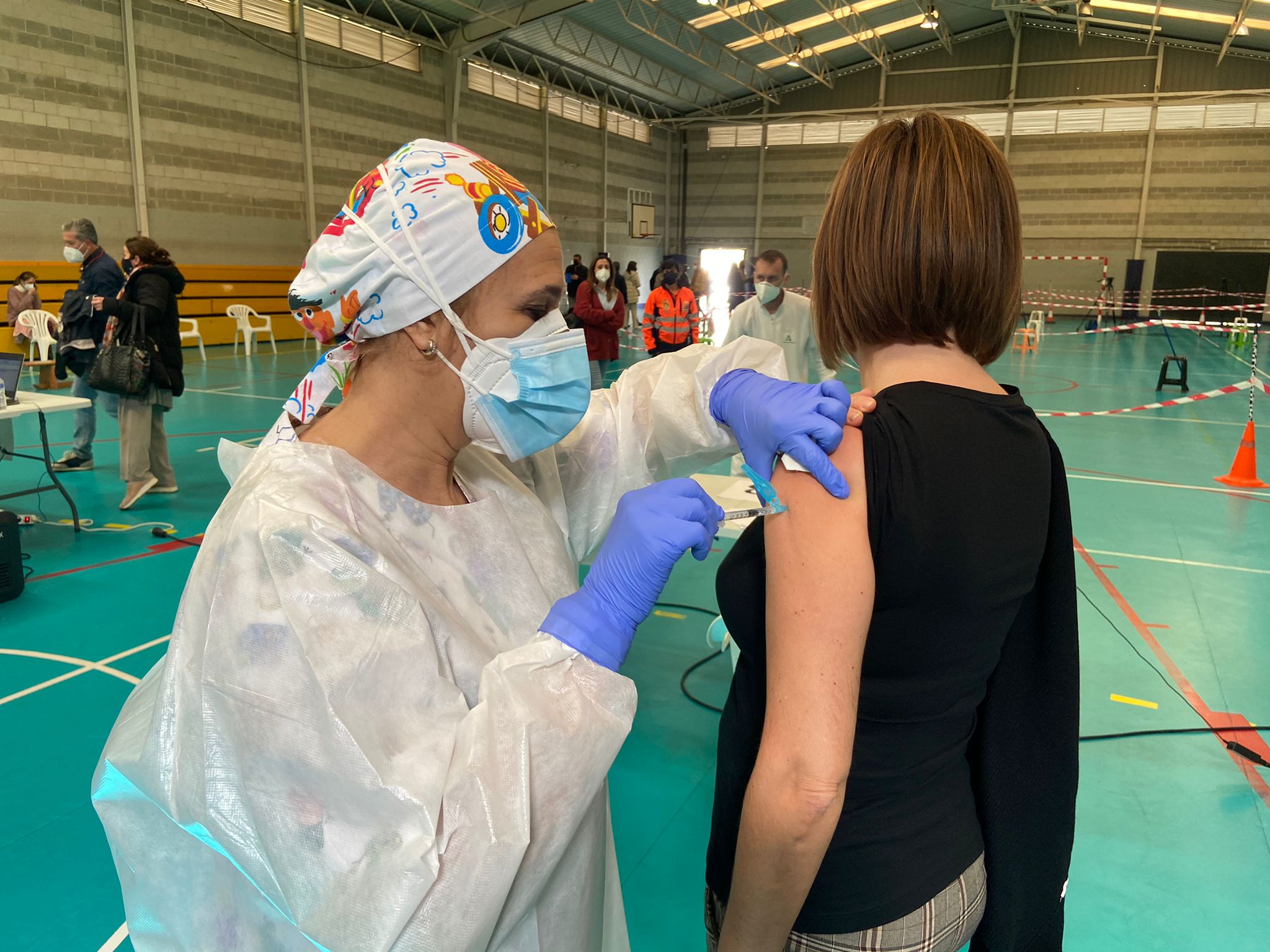 Isabel Paredes ha querido también agradecer públicamente la colaboración de los distintos ayuntamientos de la provincia, en la cesión de instalaciones para poder desarrollar la campaña de vacunación, como es el caso de Algeciras, que se lleva a cabo en el Pabellón Deportivo Andrés Mateo.