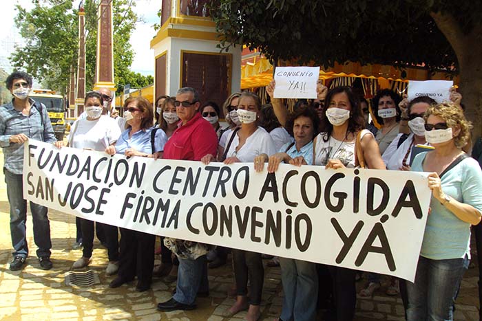 Aún no se había inaugurado el alumbrado de la Feria y el Real ya ha sido escenario de una protesta laboral. Los protagonistas han sido los trabajadores del Centro de Acogida San José, que han convocado una huelga a partir del próximo lunes 13 de mayo si antes no alcanzan una solución al stand-by que sufre su convenio colectivo desde hace tres años. Unas veces porque se auguraba un cambio de gobierno, otras porque hay que esperar a que la Junta de Andalucía se pronuncie respecto a posibles recortes en Dependencia, lo cierto es que las negociaciones se han alargado en el tiempo y ahora hace ya casi dos meses que no se convoca ninguna reunión.
