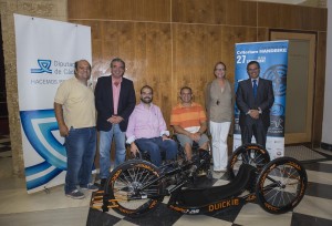 El próximo sábado 27 de septiembre se celebra en el Circuito de velocidad de Jerez el I Critérium de Handbike, una modalidad de deporte adaptado en el que se compite con una bicicleta impulsada a mano. Los detalles de la competición han sido presentados en rueda de prensa por el diputado de Deportes, Juan José Marmolejo, la delegada de Medio Ambiente y Deporte del Ayuntamiento de Jerez, Felisa Rosado, y los deportistas y miembros del club organizador, Handbike Jerez, Francisco Zuasti y Rafael Muñoz.