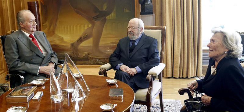 Paralelamente, este lunes, el Rey Don Juan Carlos, acompañado por la Reina Doña Sofía, recibió a Caballero Bonald para felicitarle por su Premio Cervantes, en un encuentro que fue muy distendido por ambas partes. También estuvieron presentes en el encuentro el ministro de Cultura, José Ignacio Wert, y el director del Instituto Cervantes, Víctor García de la Concha. Se trataba, además, de la primera reaparición pública del Rey tras su convalecencia de mes y medio.